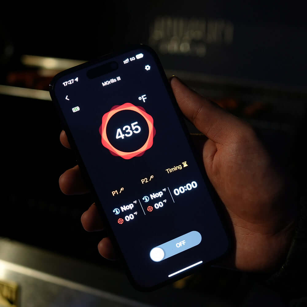 Bluetooth app enables temperature monitoring, alerts, and timer control from your phone. -
